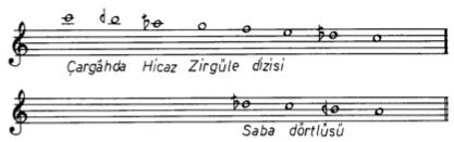 Çargâh perdesinde Hicaz-Zirgüle dizisiyle Sabâ dörtlüsünün birbirine katılmasından hasıl olmuştur.21
