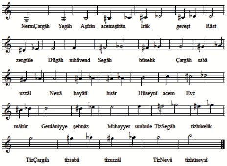 b. Tîzden nerme giderken kullanılan nîm perdelere göre makamlar