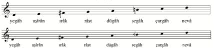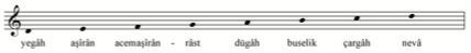 Buna göre yegâhdan daha aşağı perdelerin başına “nerm” kelimesi getirilecektir.9 Aynı durum; “tiz” ve “dik” kelimeleri için de geçerlidir.