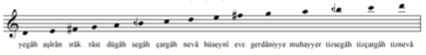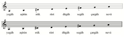 Türk musikisinde asırlarca tabii yani tam kabul edilmiş perdeler ise; yegâh, aşiran, ırak, rast, dügâh, segâh, çargâh ve oktavlarıdır. Bu perde sıralaması, aralarında bulunan aralıkların da hesaba katılmasıyla- porteye geçirildiğinde ortaya aşağıdaki görünüm çıkmaktadır:1