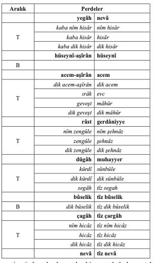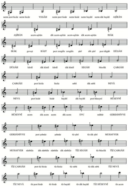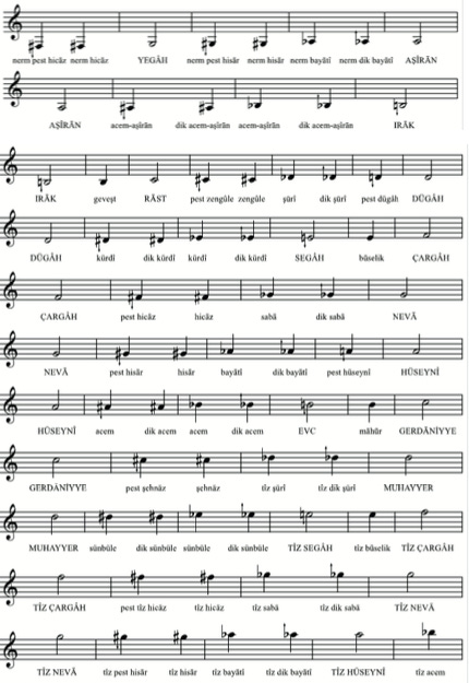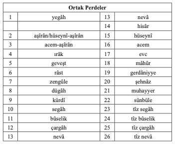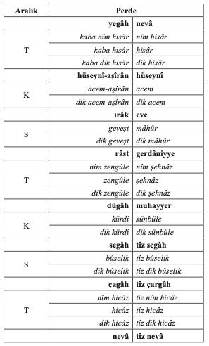 Kantemiroğlu’ndan bu yana ve son üç asırda ortak olarak kullanılan perdeleri sıraladığımızda ortaya aşağıdaki gibi bir tablo çıkmaktadır.