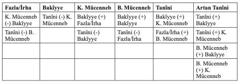 Tablo 8’e dikkatle bakıldığında Tanîni aralığında oluşan çoğu nîm perdenin iki ismi olduğu görülecektir. Burada amaç, makâm/terkîb için önemli olan bir perdenin adını değiştirmemektir. Bunların önemi; perdelerin portede gösterilmesiyle ortaya çıkacaktır.