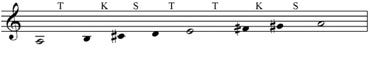 Gelenekten gelen ana diziyi oluşturan ilk sekizlideki aralıklar; T + K + S + T + K + S + T aralıklarıdır. Aynı aralıklar ikinci sekizlide de kullanılmaya devam etmektedir. Āhenkler, doğal diziyi oluşturan aralık sıralamasına göre oluşurlar;